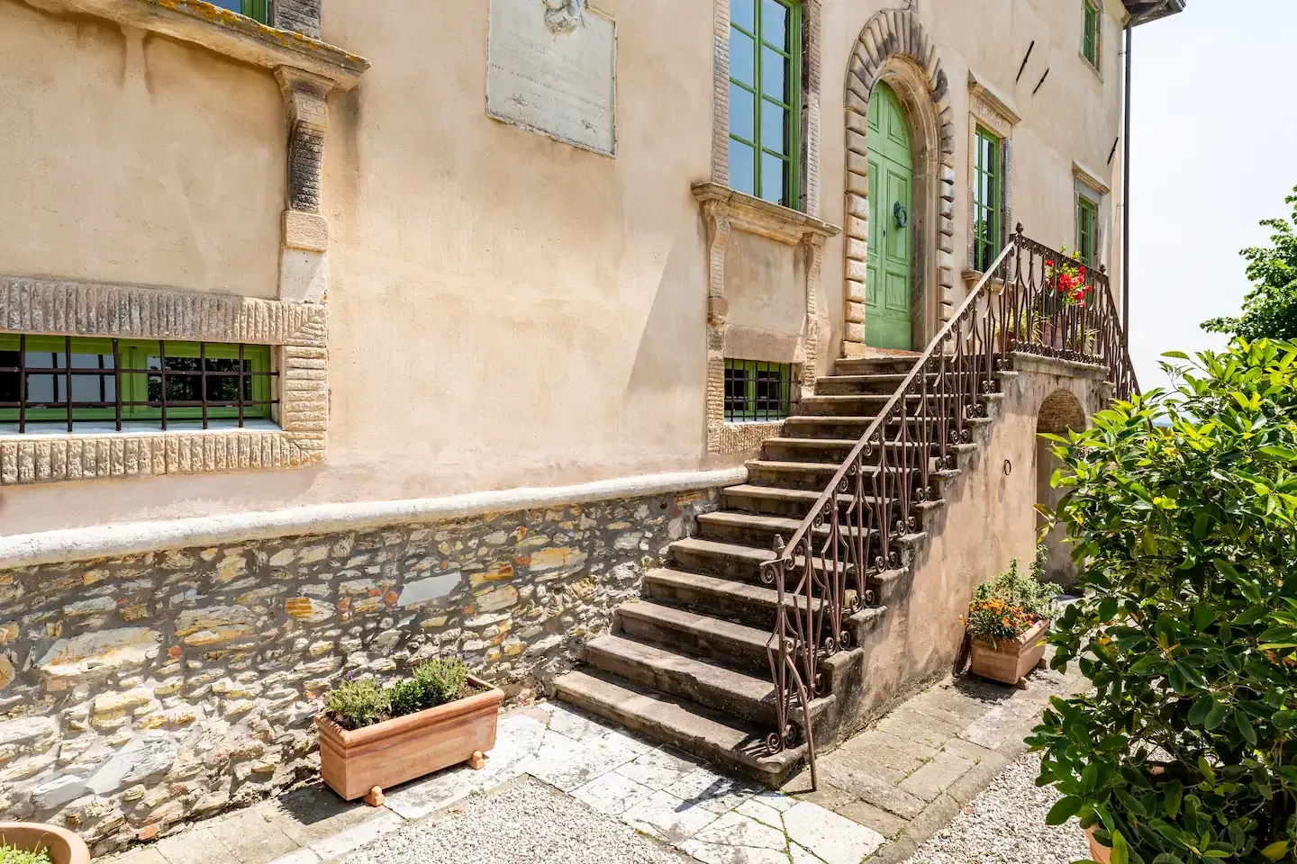 La villa è stata attentamente restaurata per mantenere il suo fascino storico, con dettagli architettonici originali che si fondono armoniosamente con le comodità moderne.
